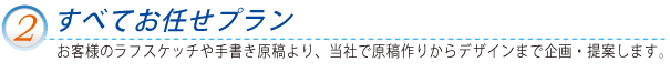 ラフスケッチや手書きラフをお客様が作って頂き、 当社が原稿作りからデザインまで行います。 制作 物の使用目的などをお聞きしてプロデュースします。