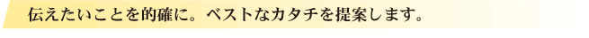 印刷物の役割は、伝えたい情報を伝えたい人に、タイムリーに提供すること。コンセプトを明確にし、想定するターゲットに合わせたデザインをすることが大切です。お客様が求めるもの、時代の流れにあったものを・・・。当社ではさまざまな個性をもつスタッフに加え、たくさんのネットワークで、求めるイメージに最も適したツールを提案しています。